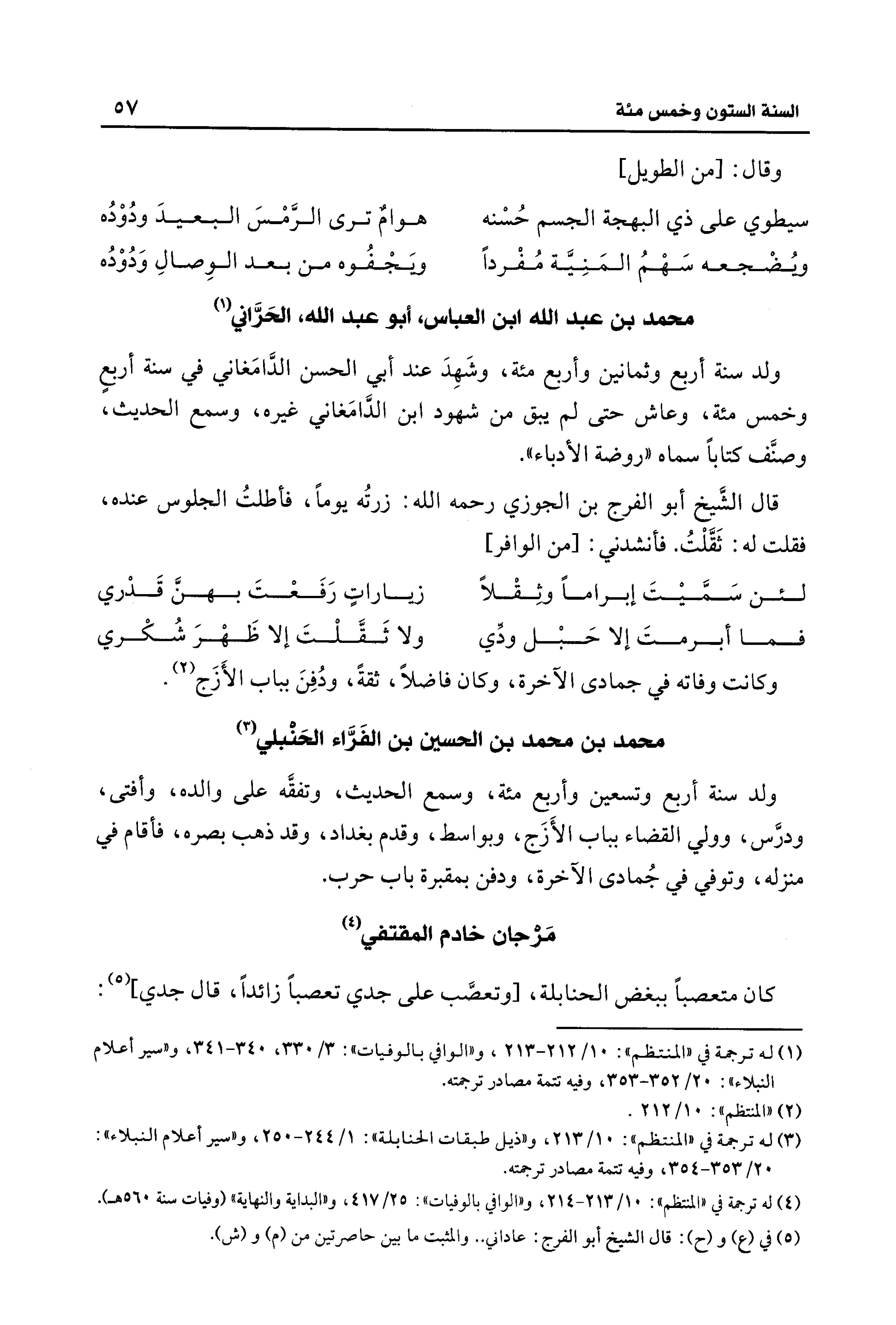 (¬1) له ترجمة في "المنتظم": 10/ 212 - 213، و"الوافي بالوفيات": 3/ 330، 340 - 341، و"سير أعلام النبلاء": 20/ 352 - 353، وفيه تتمة مصادر ترجمته.