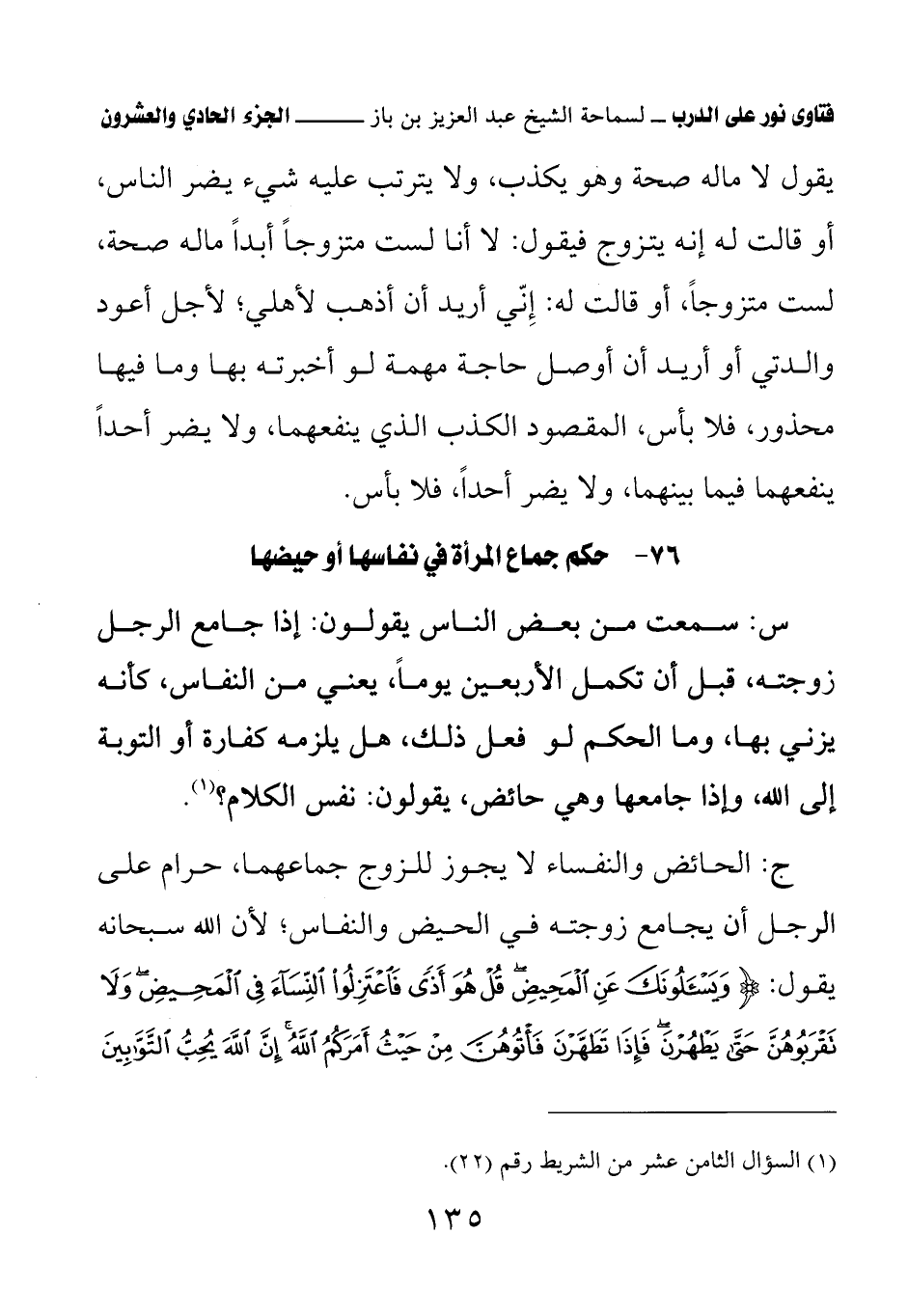 76 - حكم جماع المرأة في نفاسها أو حيضها