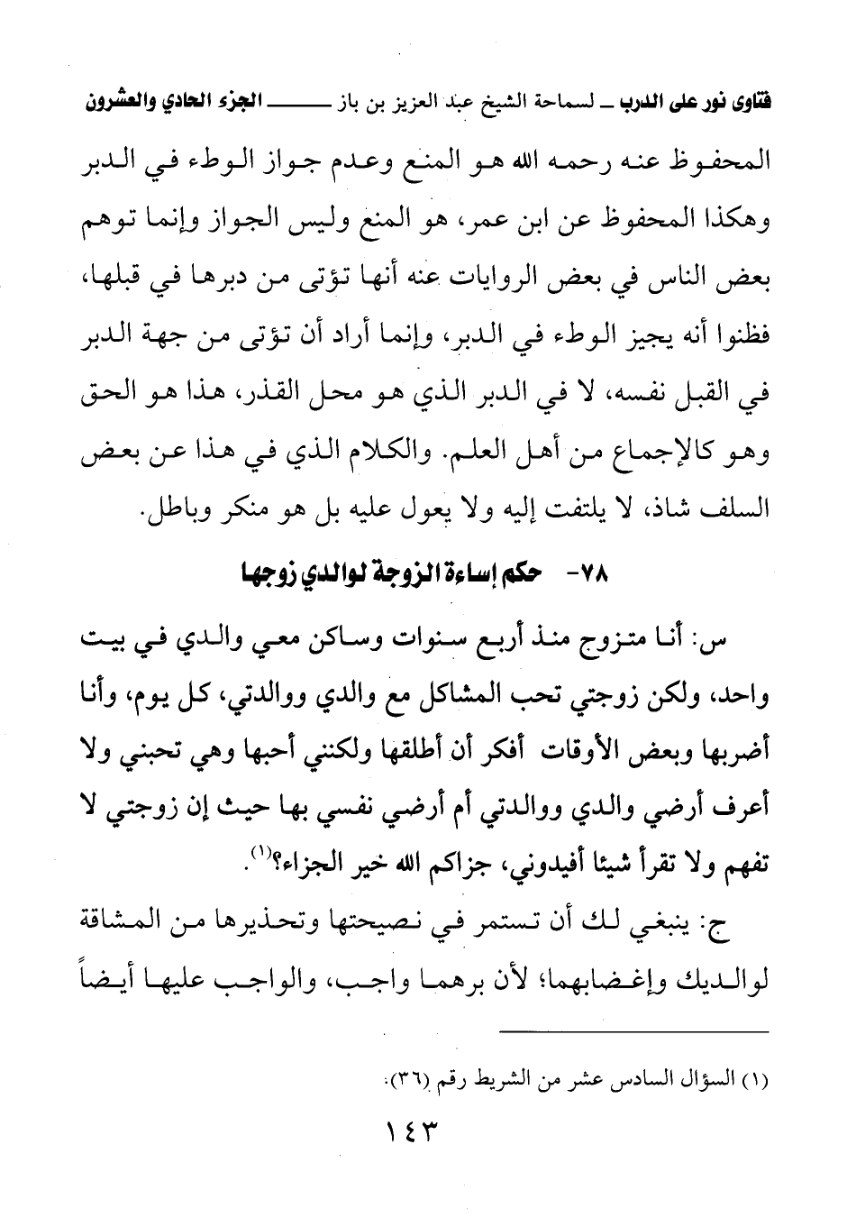 78 - حكم إساءة الزوجة لوالدي زوجها