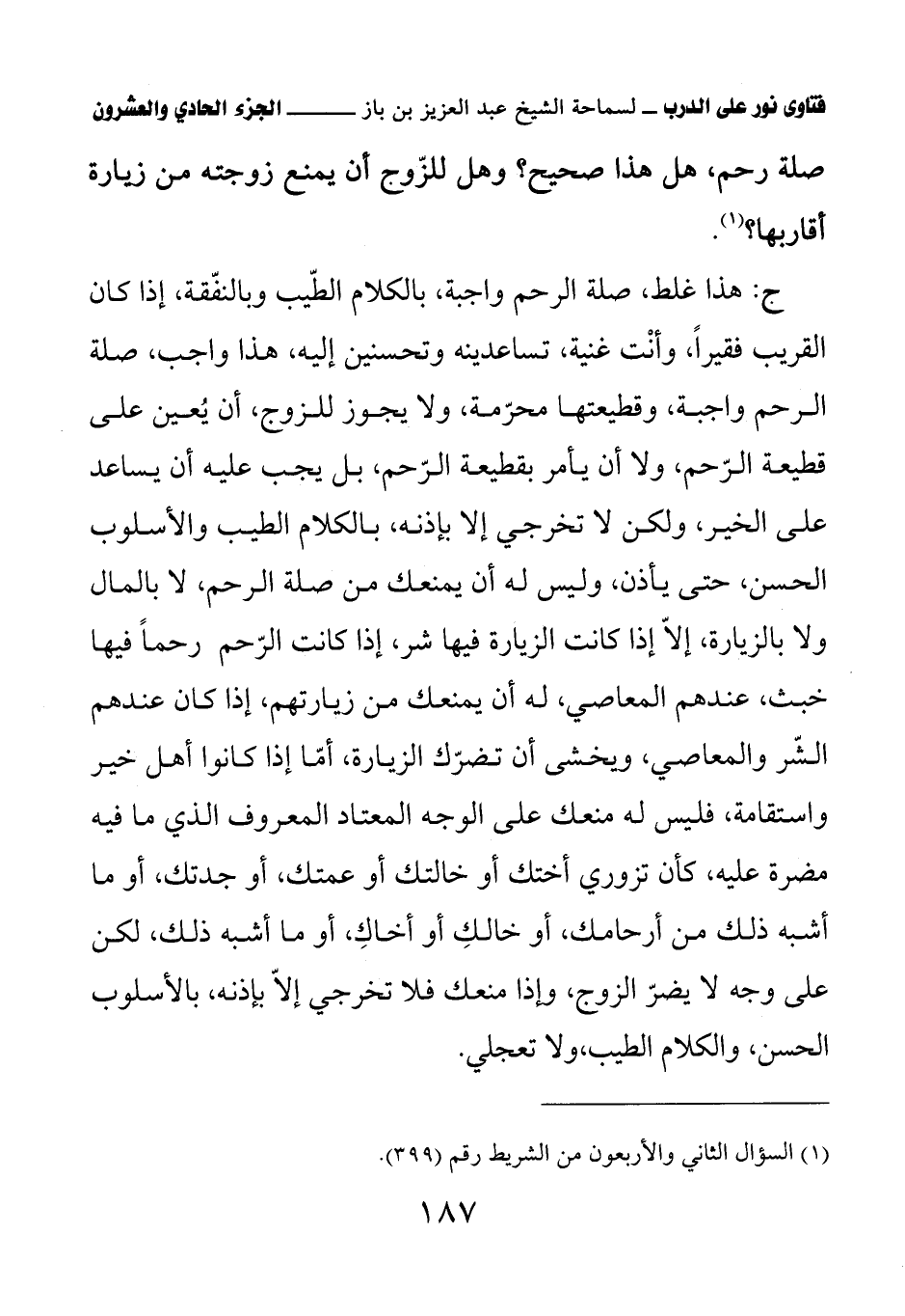 (¬1) السؤال الثاني والأربعون من الشريط رقم (399).