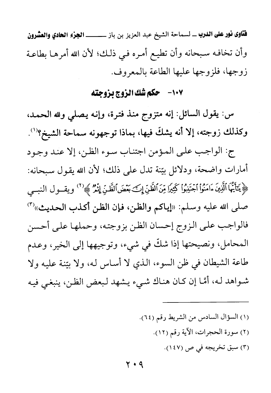 107 - حكم شك الزوج بزوجته