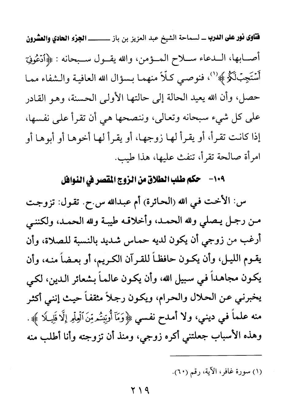 109 - حكم طلب الطلاق من الزوج المقصر في النوافل