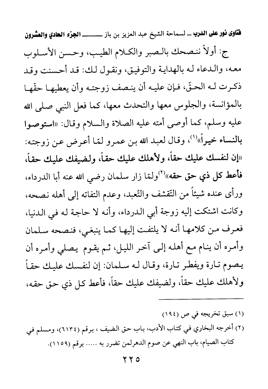 (¬2) أخرجه البخاري في كتاب الأدب، باب حق الضيف، برقم (6134)، ومسلم في كتاب الصيام، باب النهي عن صوم الدهر لمن تضرر به .. برقم (1159).