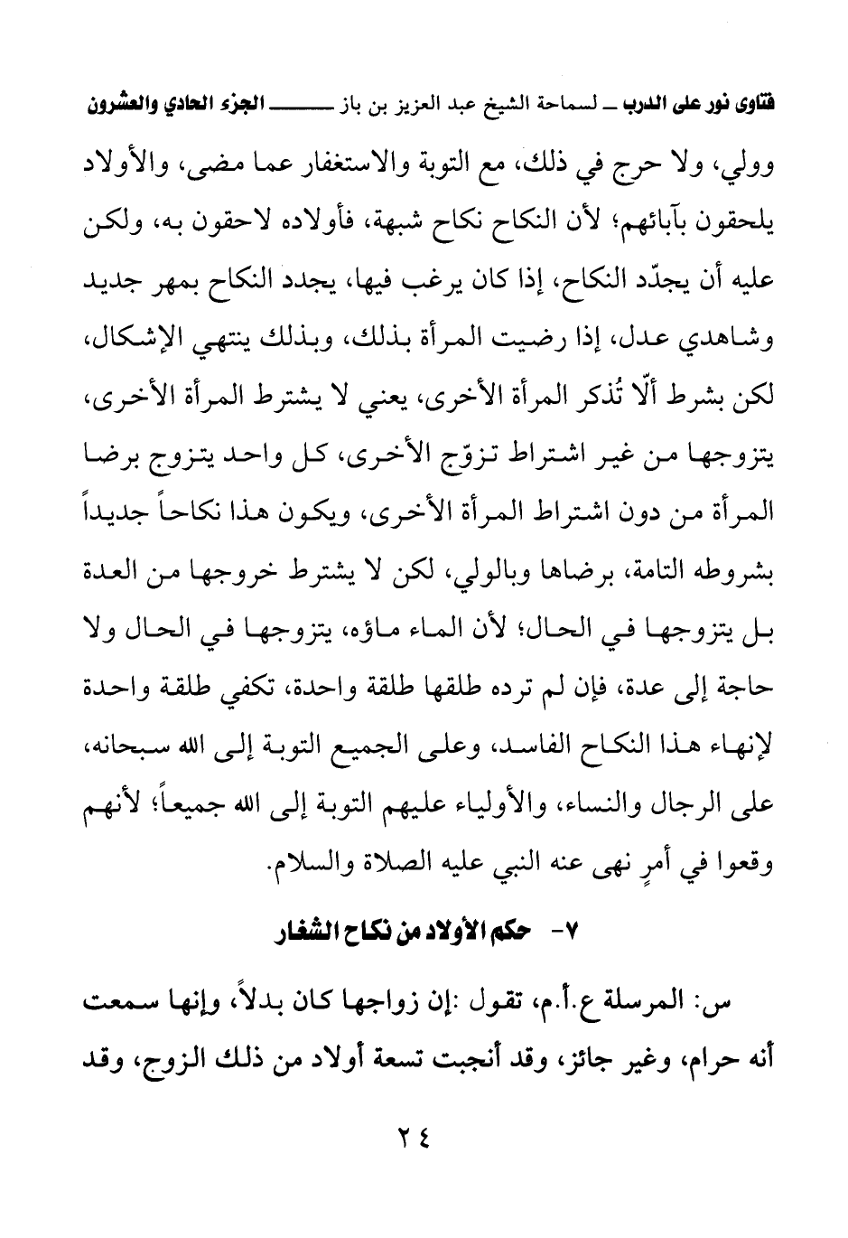 كتاب فتاوى نور على الدرب لابن باز بعناية الشويعر (اسم الجزء: 21)