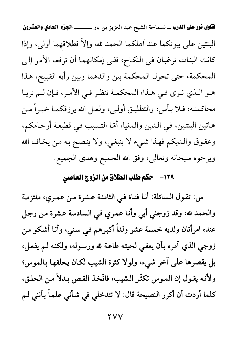 129 - حكم طلب الطلاق من الزوج العاصي