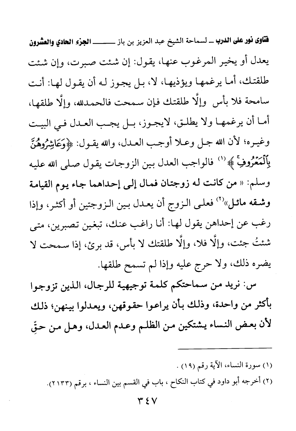 (¬1) أخرجه أبو داود في كتاب النكاح، باب في القسم بين النساء، برقم (2133).