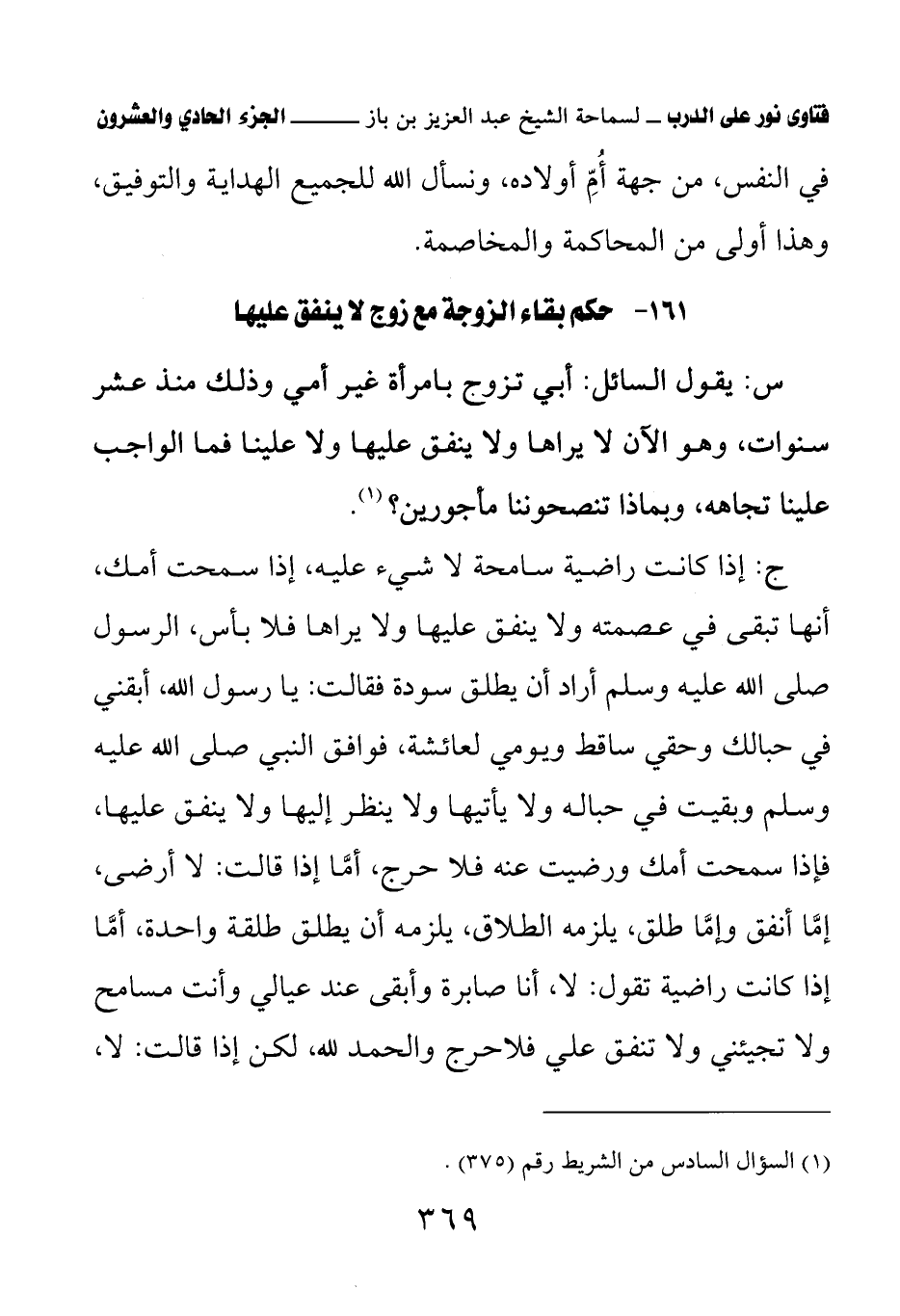 (¬1) السؤال السادس من الشريط رقم (375).