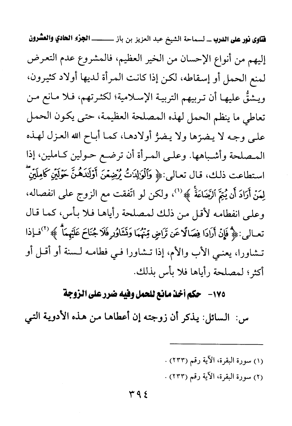 175 - حكم أخذ مانع للحمل وفيه ضرر على الزوجة