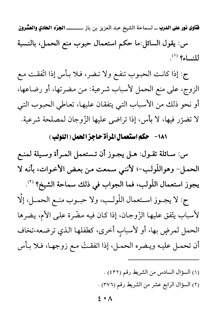 181 - حكم استعمال المرأة حاجز الحمل (اللولب)