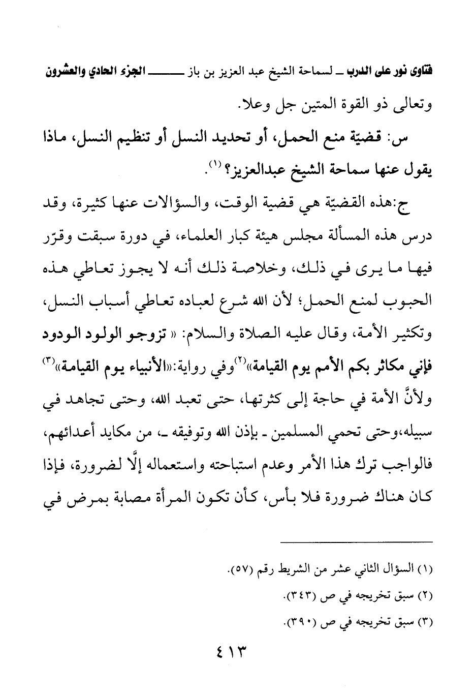 س: قضية منع الحمل، أو تحديد النسل أو تنظيم النسل، ماذا يقول عنها سماحة الشيخ عبد العزيز؟ (¬1)