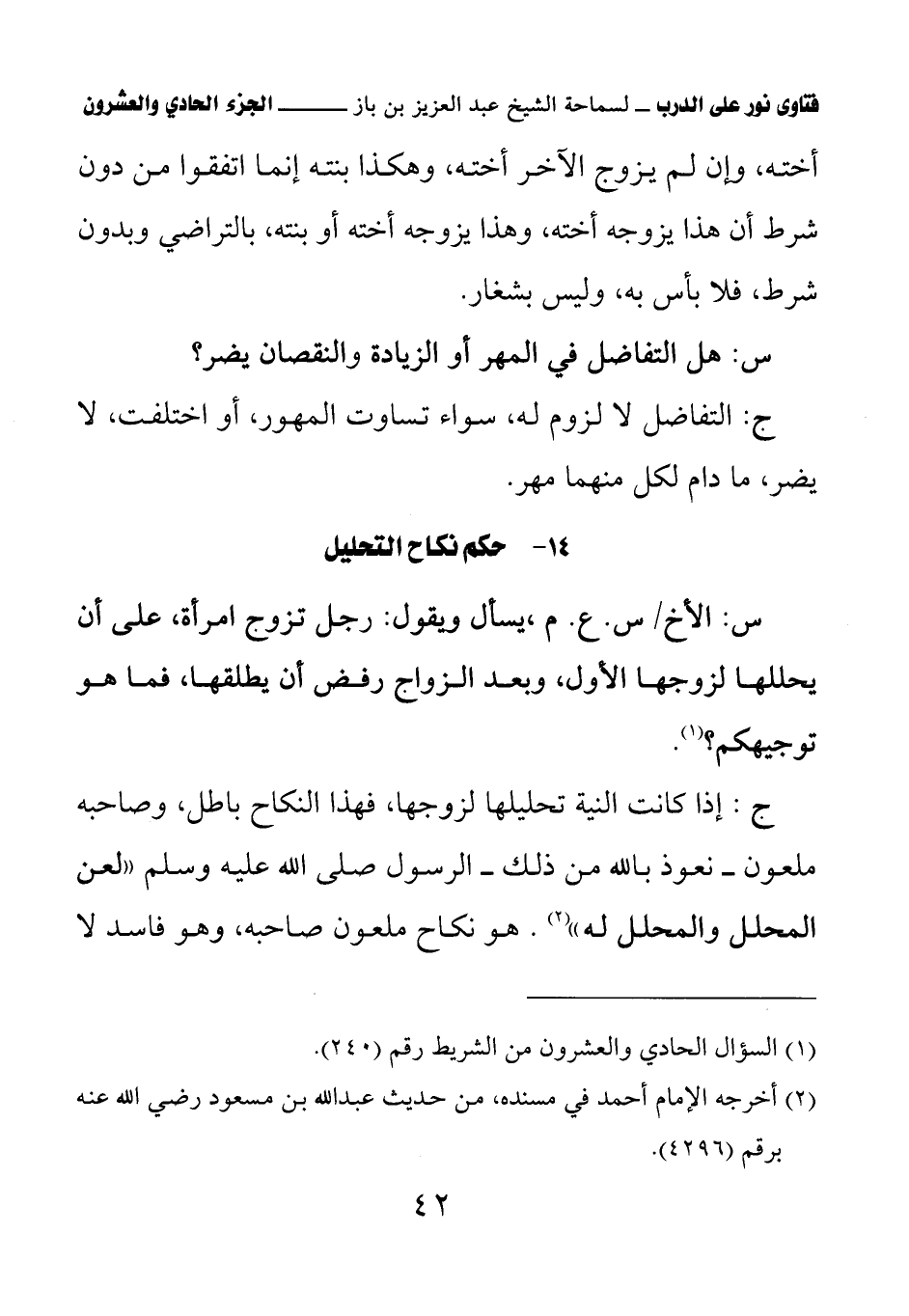 (¬1) السؤال الحادي والعشرون من الشريط رقم (240).
