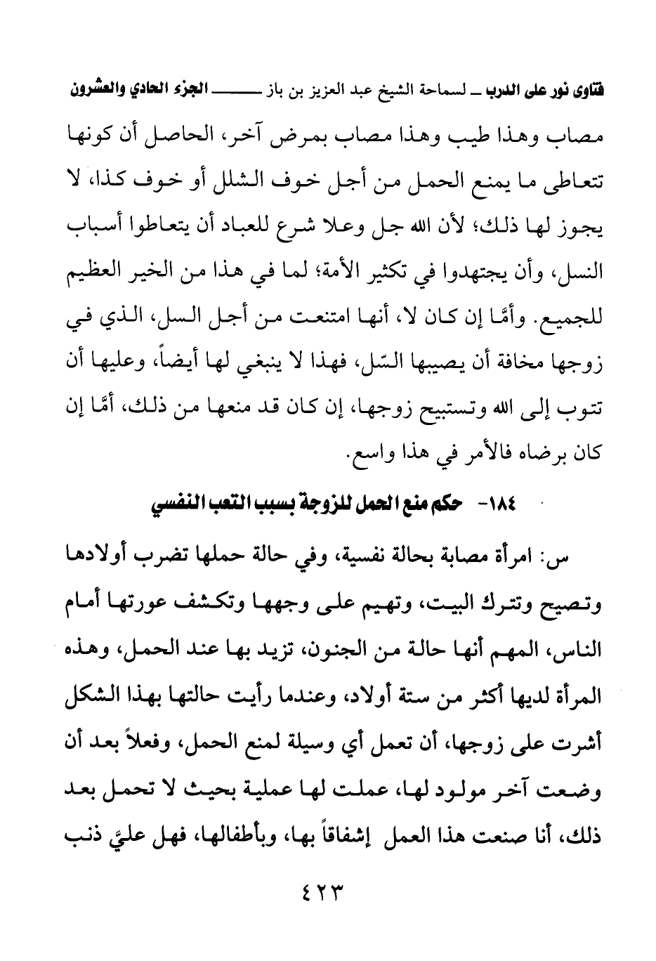 184 - حكم منع الحمل للزوجة بسبب التعب النفسي