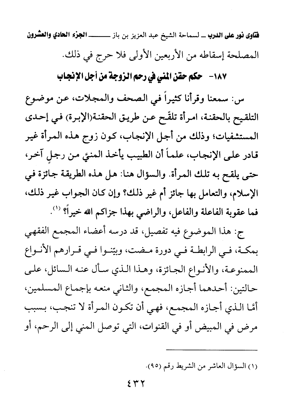 187 - حكم حقن المني في رحم الزوجة من أجل الإنجاب