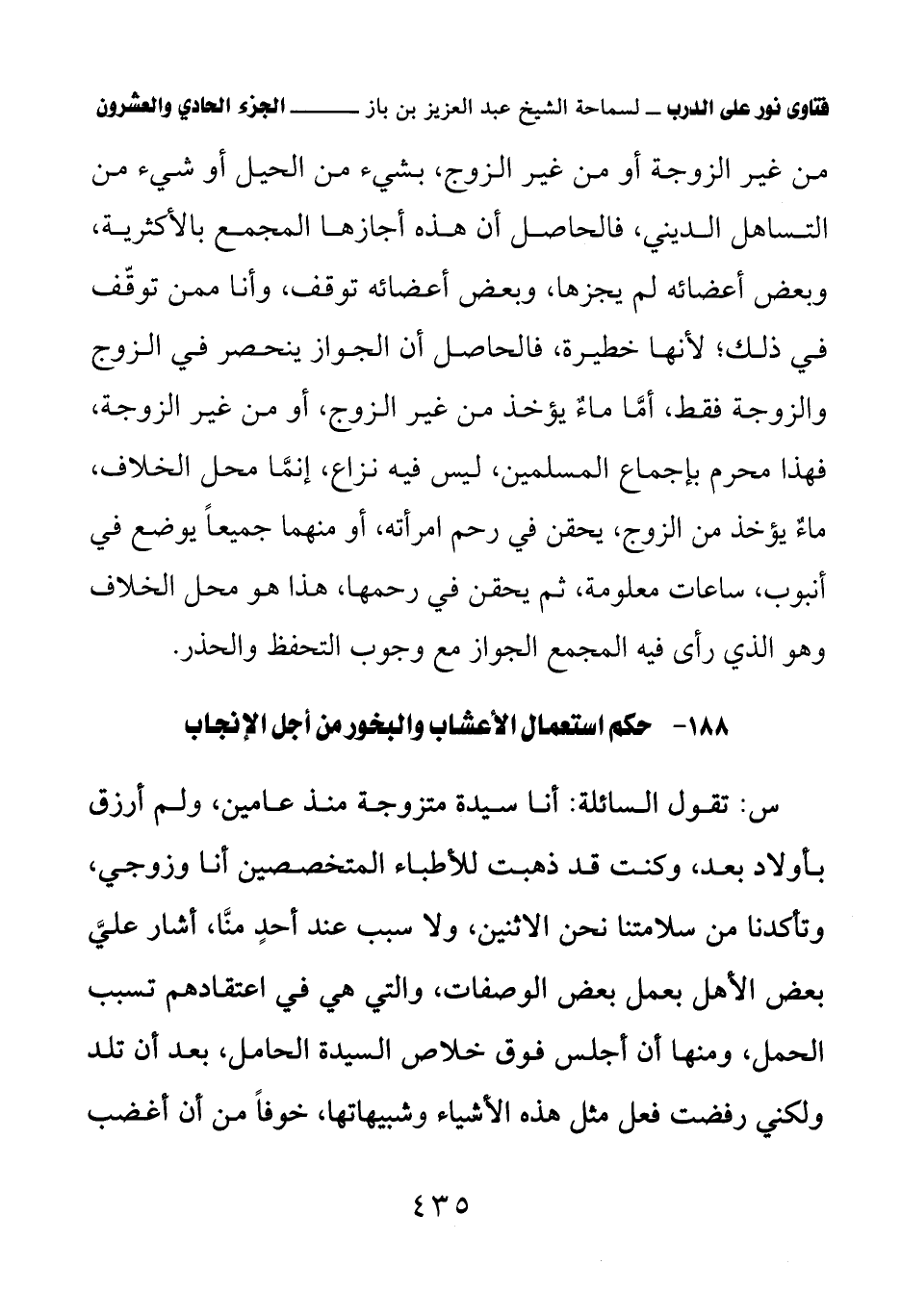188 - حكم استعمال الأعشاب والبخور من أجل الإنجاب