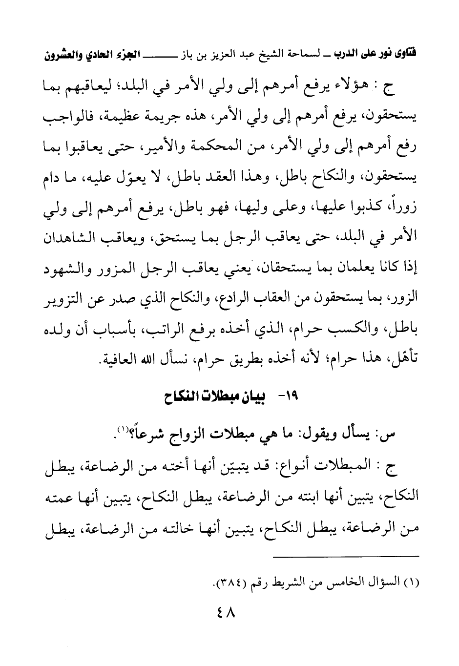 كتاب فتاوى نور على الدرب لابن باز بعناية الشويعر (اسم الجزء: 21)