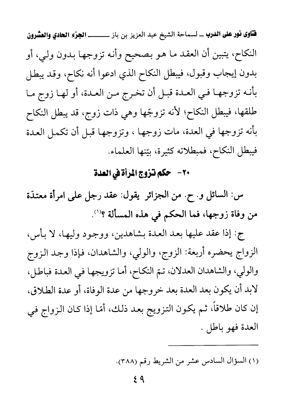 (¬1) السؤال السادس عشر من الشريط رقم (388).