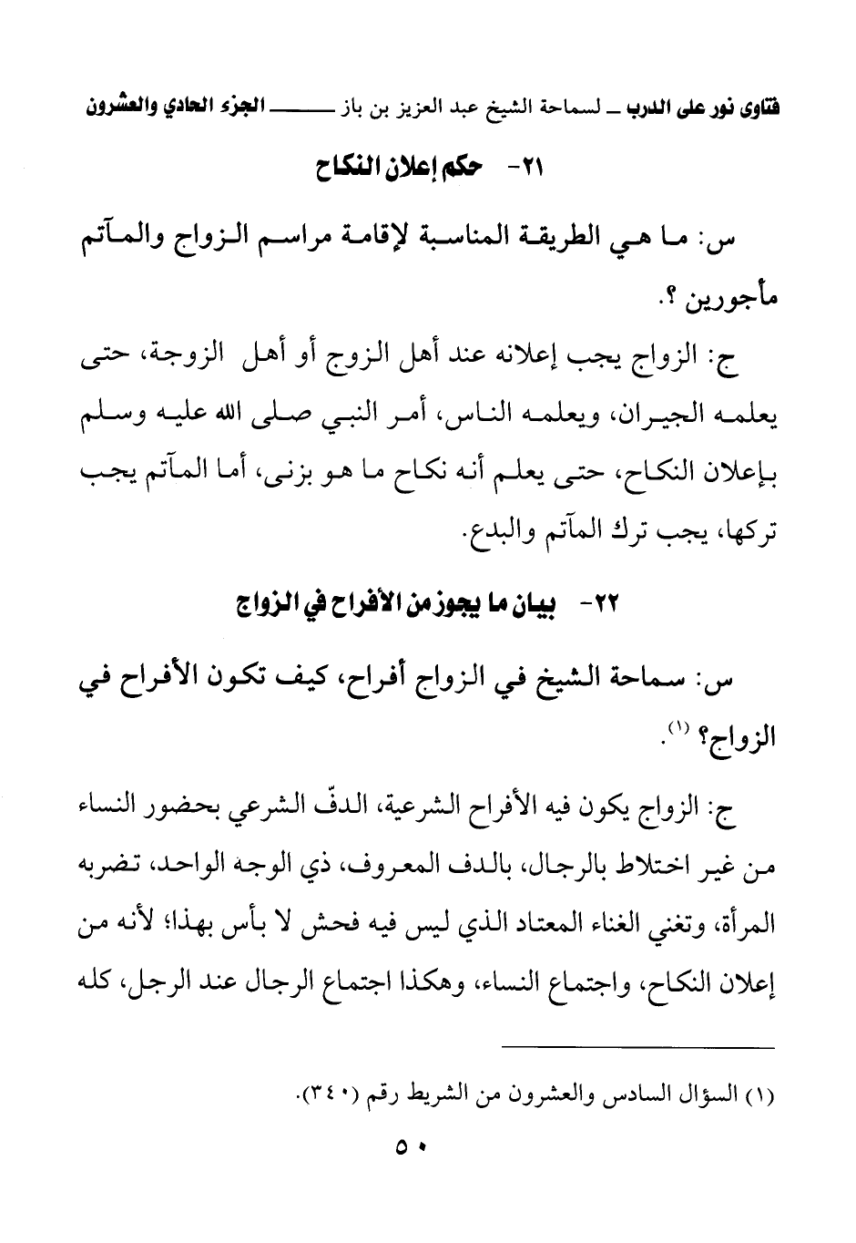 س: سماحة الشيخ في الزواج أفراح، كيف تكون الأفراح في الزواج؟ (¬1)