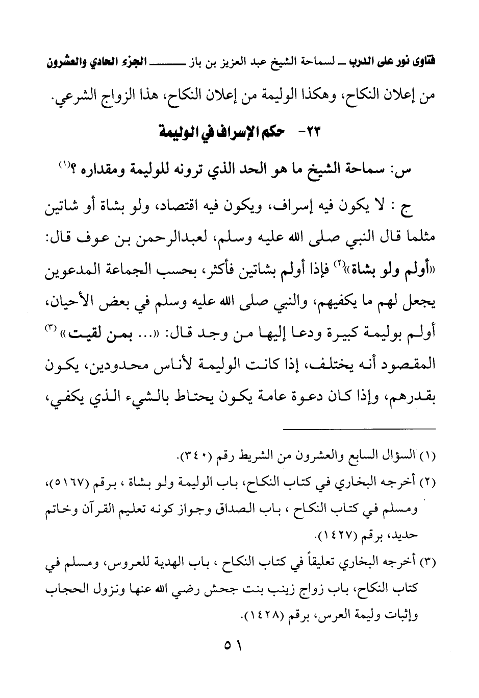 س: سماحة الشيخ ما هو الحد الذي ترونه للوليمة ومقداره؟ (¬1)