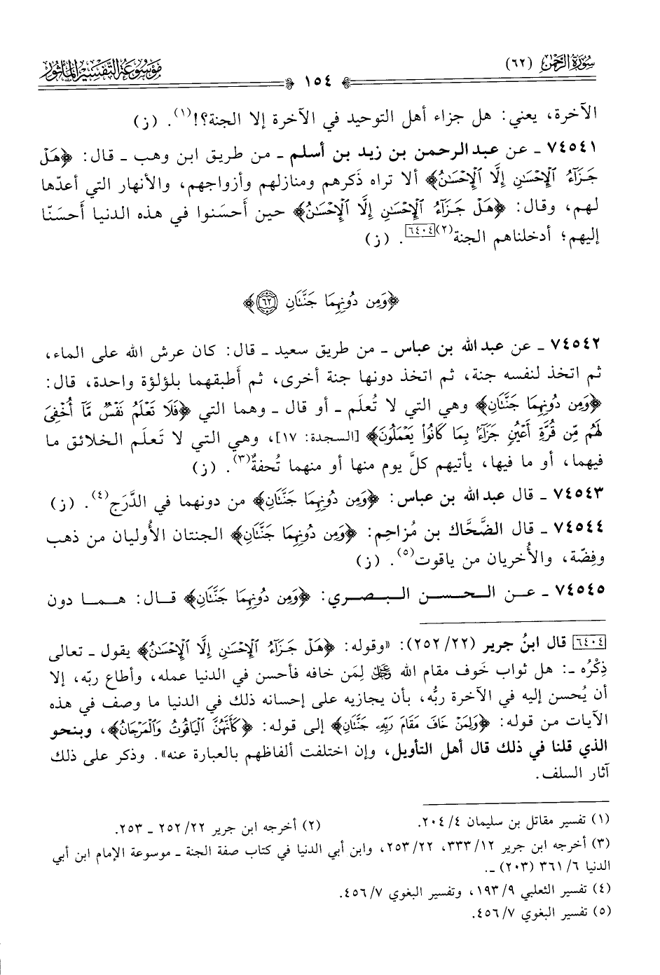 ٧٤٥٤٥ - عن الحسن البصري: {ومِن دُونِهِما جَنَّتانِ} قال: هما دون