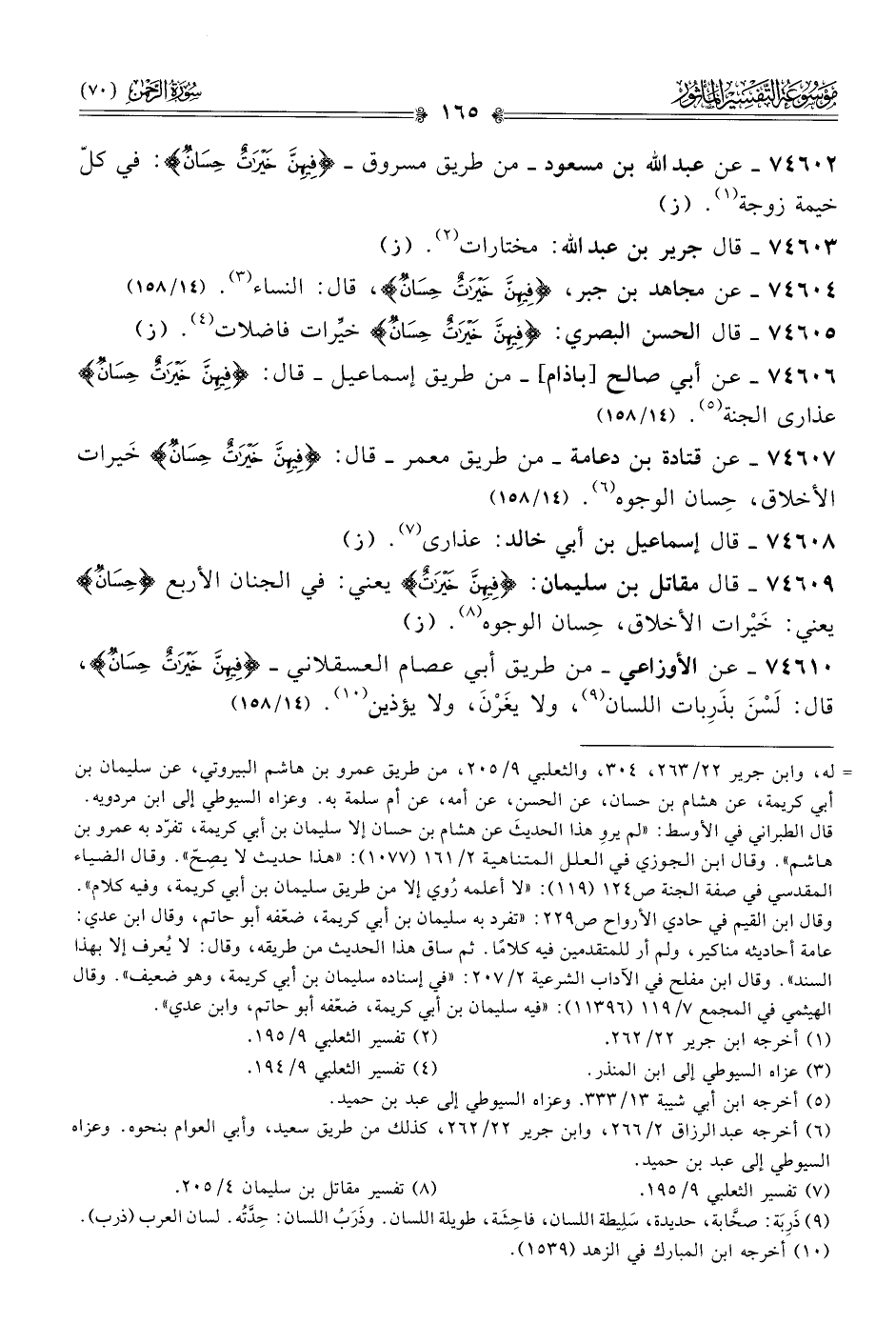 ٧٤٦٠٤ - عن مجاهد بن جبر، {فِيهِنَّ خَيْراتٌ حِسانٌ}، قال: النساء (¬٣). (١٤/ ١٥٨)