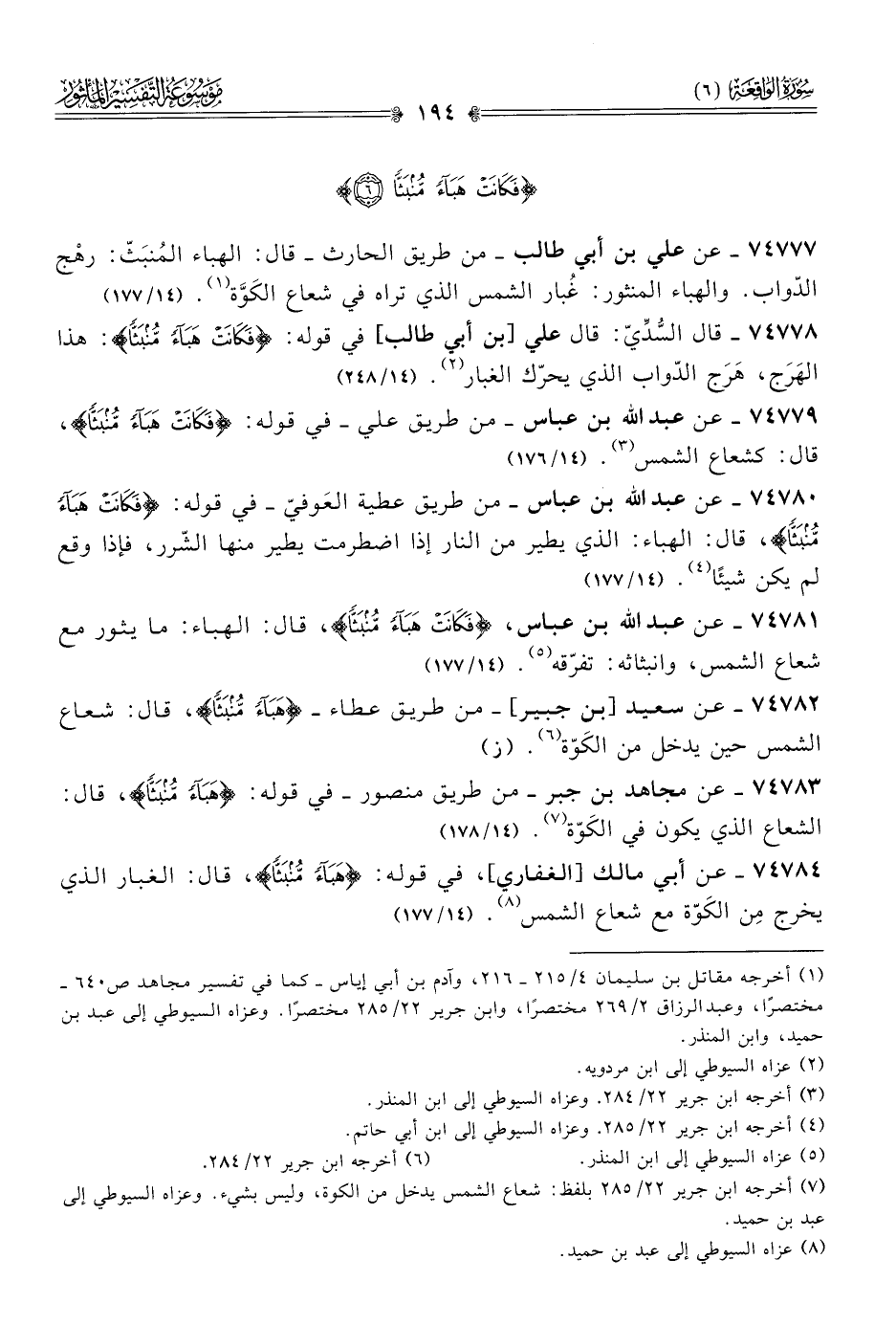 ٧٤٧٧٩ - عن عبد الله بن عباس -من طريق علي- في قوله: {فَكانَتْ هَباءً مُنْبَثًّا}، قال: كشعاع الشمس (¬٣). (١٤/ ١٧٦)
