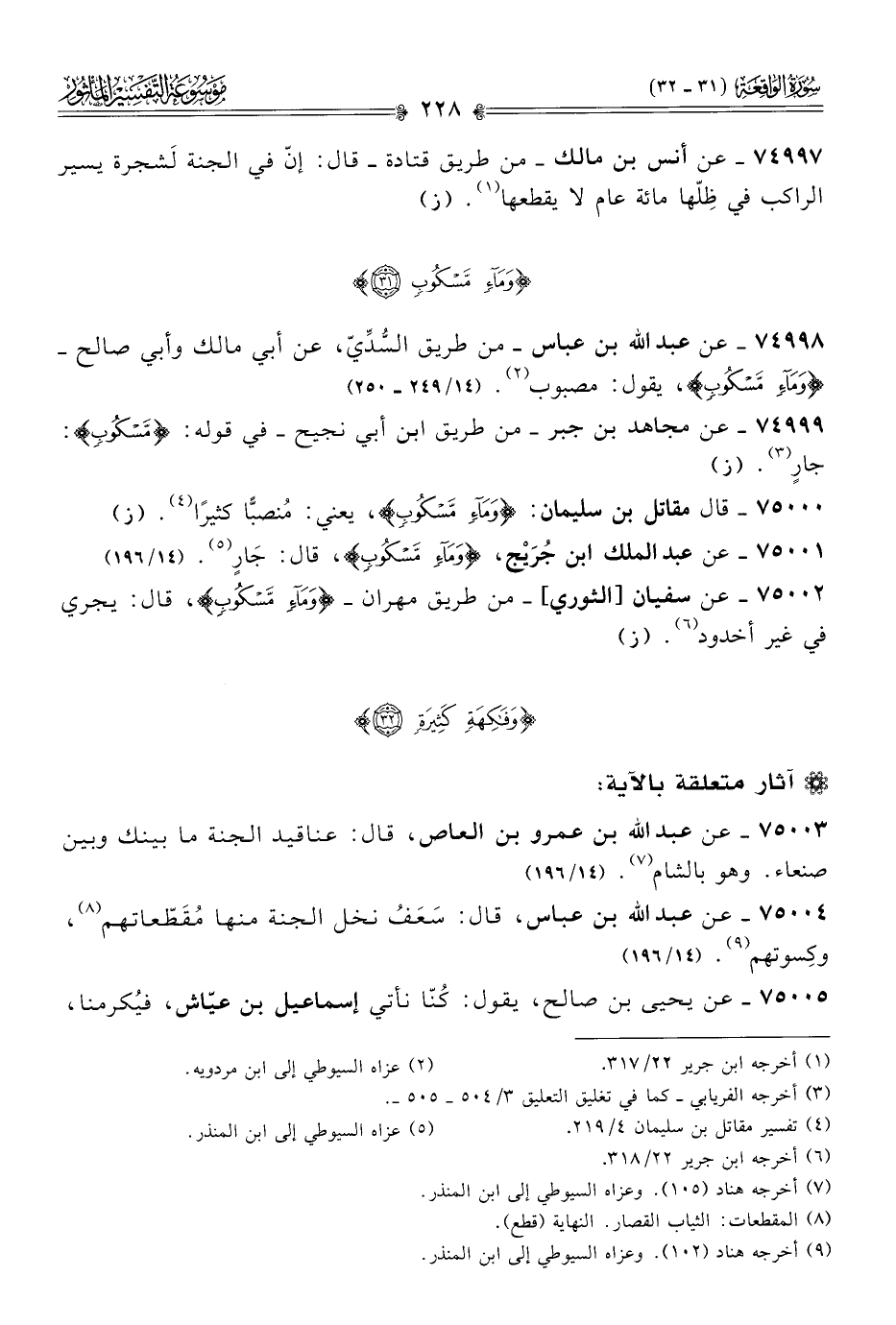 ٧٤٩٩٨ - عن عبد الله بن عباس -من طريق السُّدِّيّ، عن أبي مالك وأبي صالح- {وماءٍ مَسْكُوبٍ}، يقول: مصبوب (¬٢). (١٤/ ٢٤٩ - ٢٥٠)