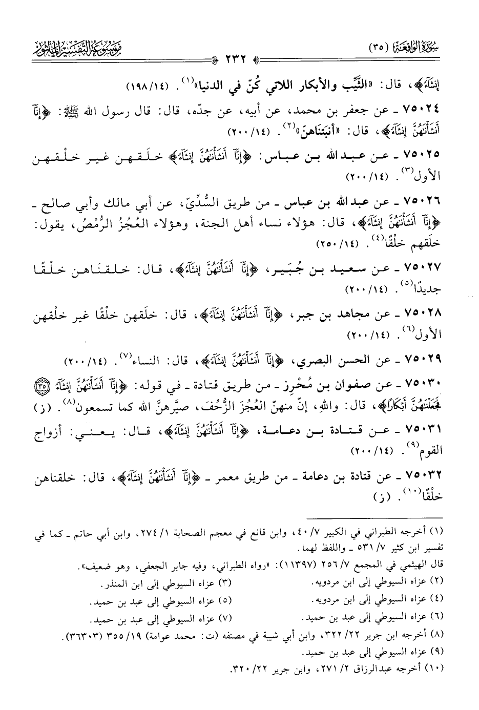 ٧٥٠٢٥ - عن عبد الله بن عباس: {إنّا أنْشَأْناهُنَّ إنْشاءً} خلَقهن غير خلْقهن الأول (¬٣). (١٤/ ٢٠٠)