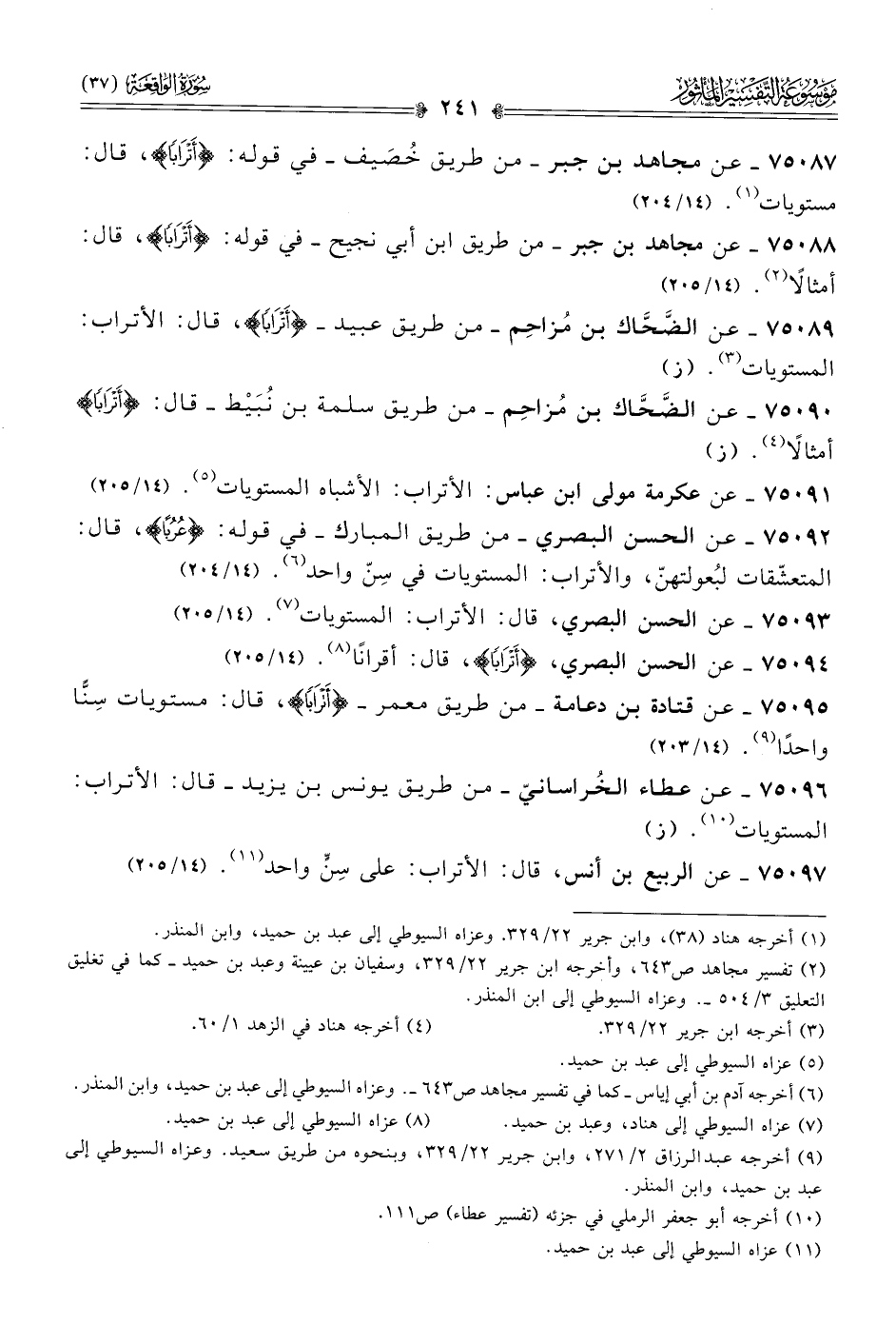 ٧٥٠٩١ - عن عكرمة مولى ابن عباس: الأتراب: الأشباه المستويات (¬٥). (١٤/ ٢٠٥)