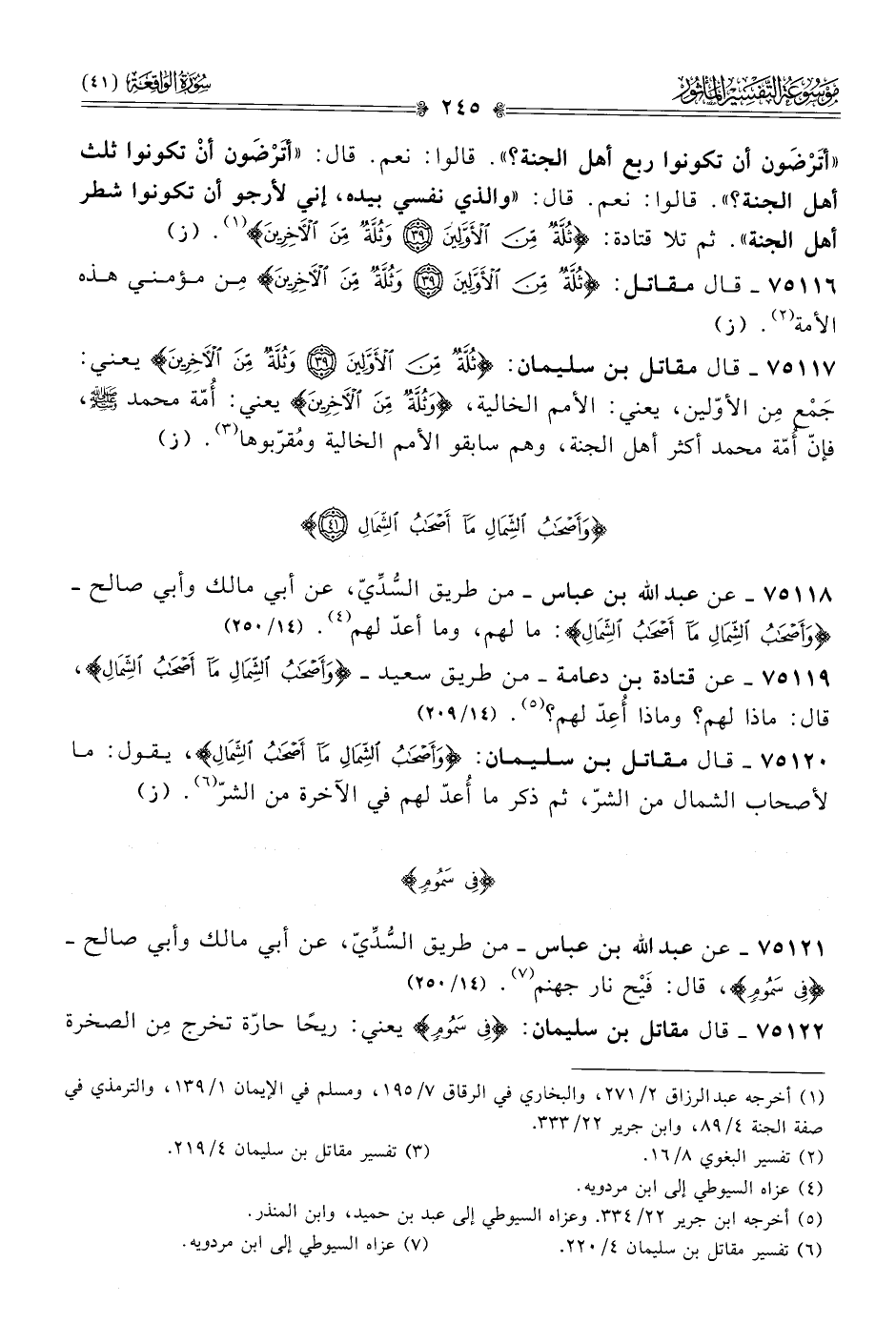 ٧٥١١٨ - عن عبد الله بن عباس -من طريق السُّدِّيّ، عن أبي مالك وأبي صالح- {وأَصْحابُ الشِّمالِ ما أصْحابُ الشِّمالِ}: ما لهم، وما أعدّ لهم (¬٤). (١٤/ ٢٥٠)