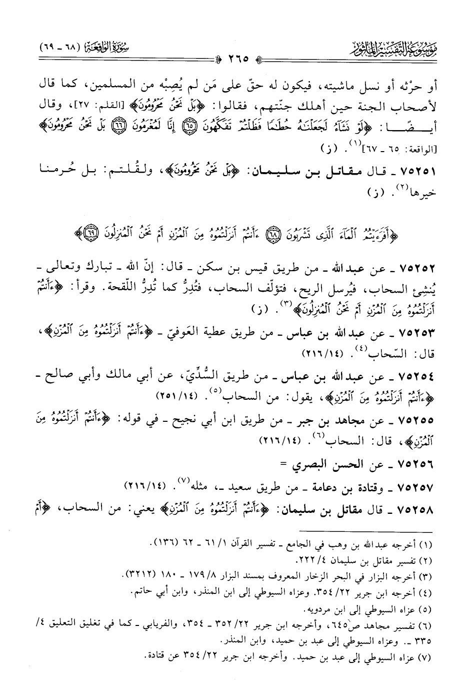 ٧٥٢٥٣ - عن عبد الله بن عباس -من طريق عطية العَوفيّ- {أأَنْتُمْ أنْزَلْتُمُوهُ مِنَ المُزْنِ}، قال: السّحاب (¬٤). (١٤/ ٢١٦)