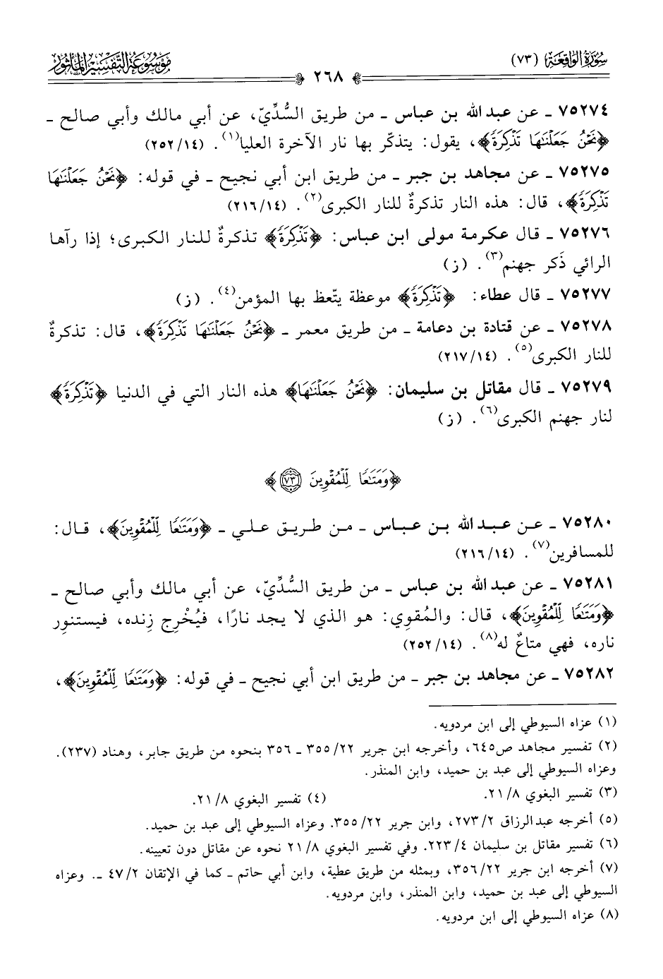 ٧٥٢٨٠ - عن عبد الله بن عباس -من طريق علي- {ومَتاعًا لِلْمُقْوِينَ}، قال: للمسافرين (¬٧). (١٤/ ٢١٦)