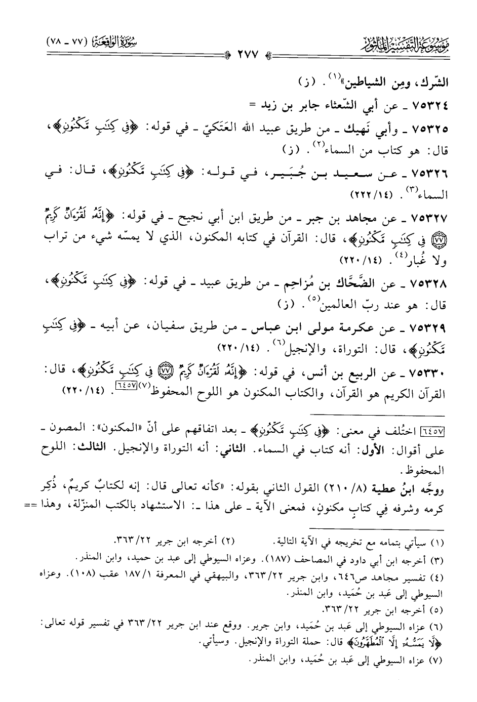 ٧٥٣٢٩ - عن عكرمة مولى ابن عباس -من طريق سفيان، عن أبيه- {فِي كِتابٍ مَكْنُونٍ}، قال: التوراة، والإنجيل (¬٦). (١٤/ ٢٢٠)