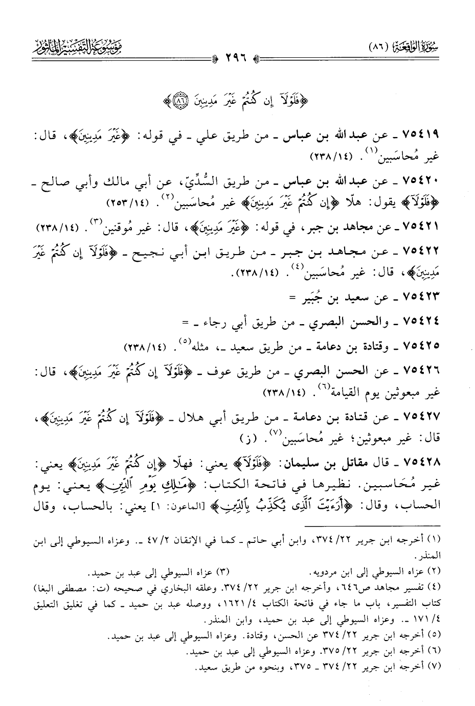 ٧٥٤٢٢ - عن مجاهد بن جبر -من طريق ابن أبي نجيح- {فَلَوْلا إنْ كُنْتُمْ غَيْرَ مَدِينِينَ}، قال: غير مُحاسَبين (¬٤). (١٤/ ٢٣٨). (١٤/ ٢٣٨)