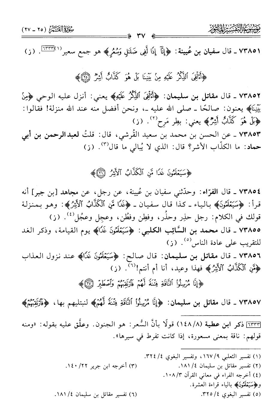 ٧٣٨٥١ - قال سفيان بن عُيينة: {إنّا إذًا لَفِي ضَلالٍ وسُعُرٍ} هو جمع سعير (¬١) [٦٣٣٣]. (ز)