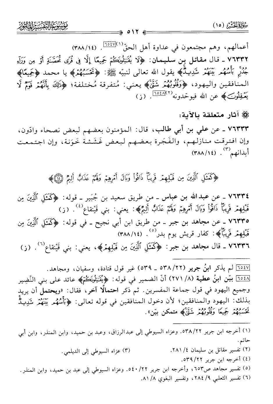 ٧٦٣٣٦ - قال مجاهد بن جبر: {كَمَثَلِ الَّذِينَ مِن قَبْلِهِمْ}، يعني: بني قَيْنقاع (¬٦). (ز)