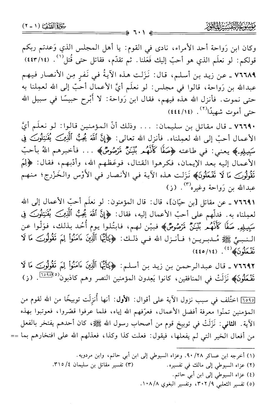 (¬٥) تفسير الثعلبي ٩/ ٣٠٢، وتفسير البغوي ٨/ ١٠٨.