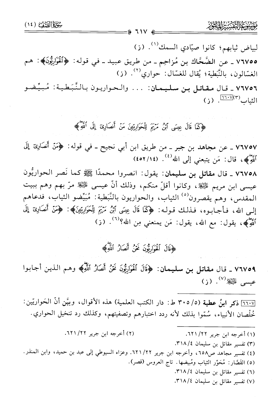 ٧٦٧٥٩ - قال مقاتل بن سليمان: {قالَ الحَوارِيُّونَ نَحْنُ أنْصارُ اللَّهِ} وهم الذين أجابوا عيسى - عليه السلام - (¬٧). (ز)