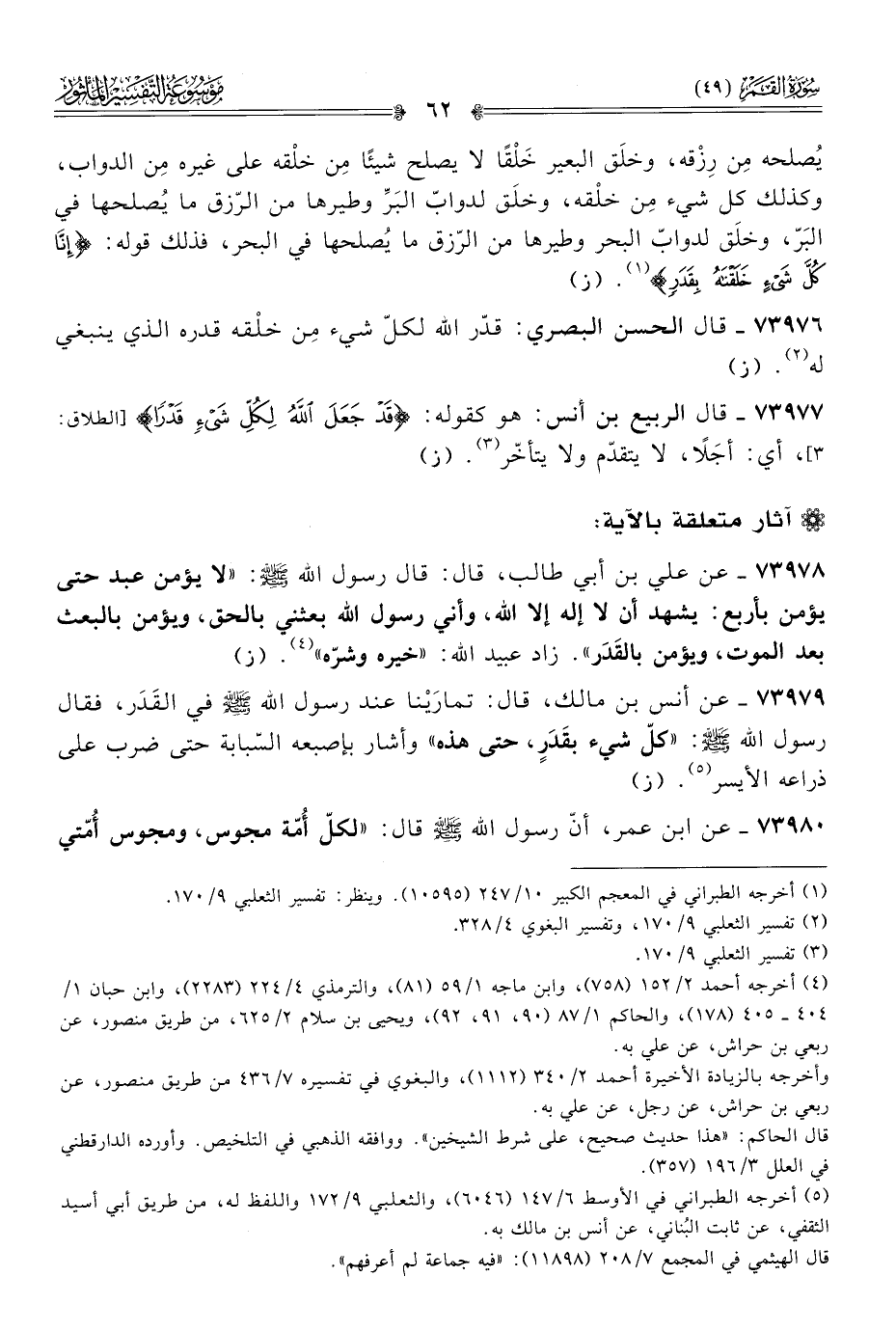 (¬٢) تفسير الثعلبي ٩/ ١٧٠، وتفسير البغوي ٤/ ٣٢٨.