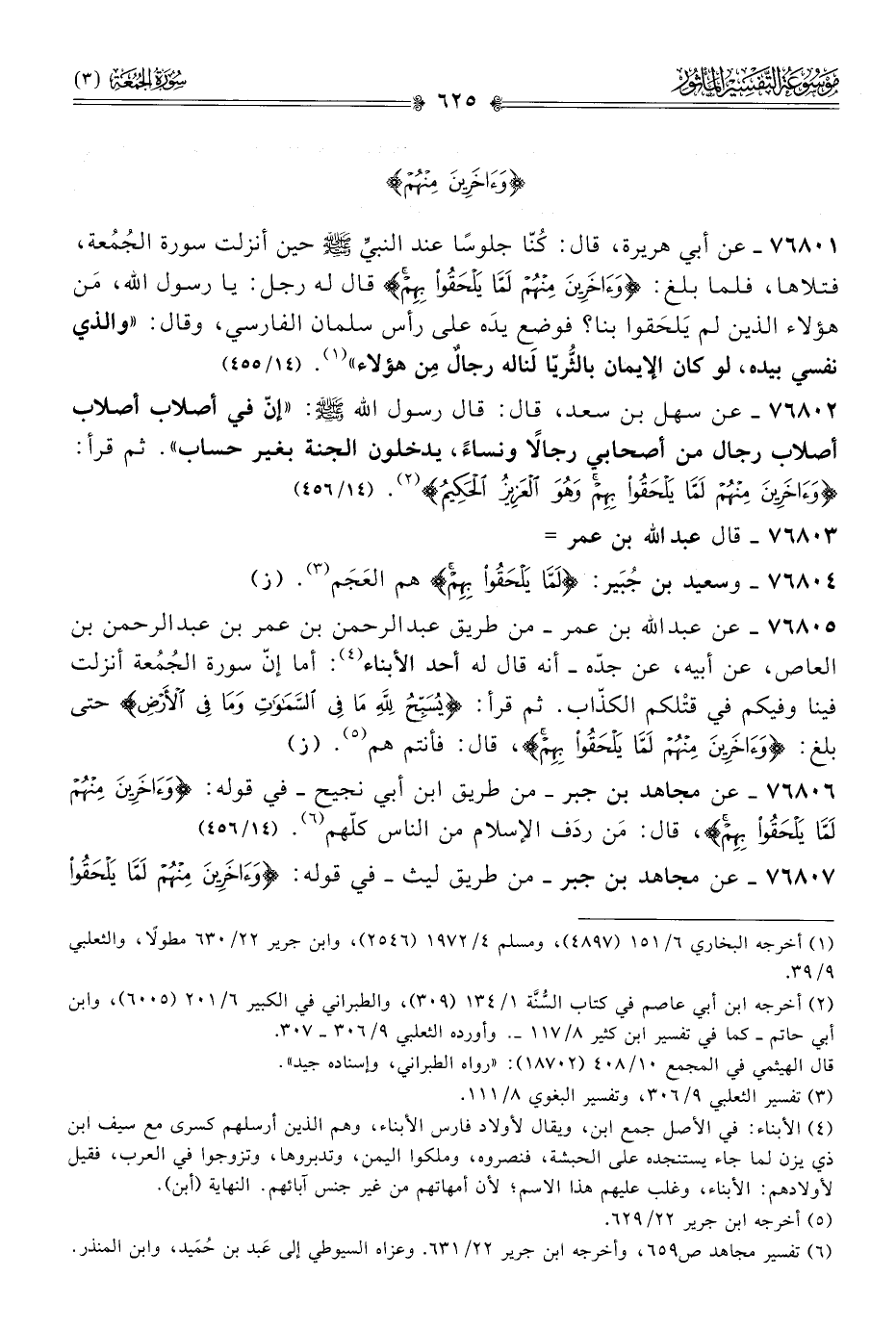 ٧٦٨٠٤ - وسعيد بن جُبَير: {لَمّا يَلْحَقُوا بِهِمْ} هم العَجَم (¬٣). (ز)