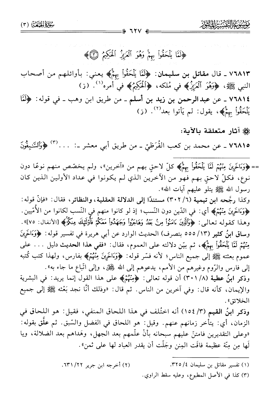 ٧٦٨١٣ - قال مقاتل بن سليمان: {لَمّا يَلْحَقُوا بِهِمْ} يعني: بأوائلهم من أصحاب النبي - صلى الله عليه وسلم -، {وهُوَ العَزِيزُ} في مُلكه، {الحَكِيمُ} في أمره (¬١). (ز)