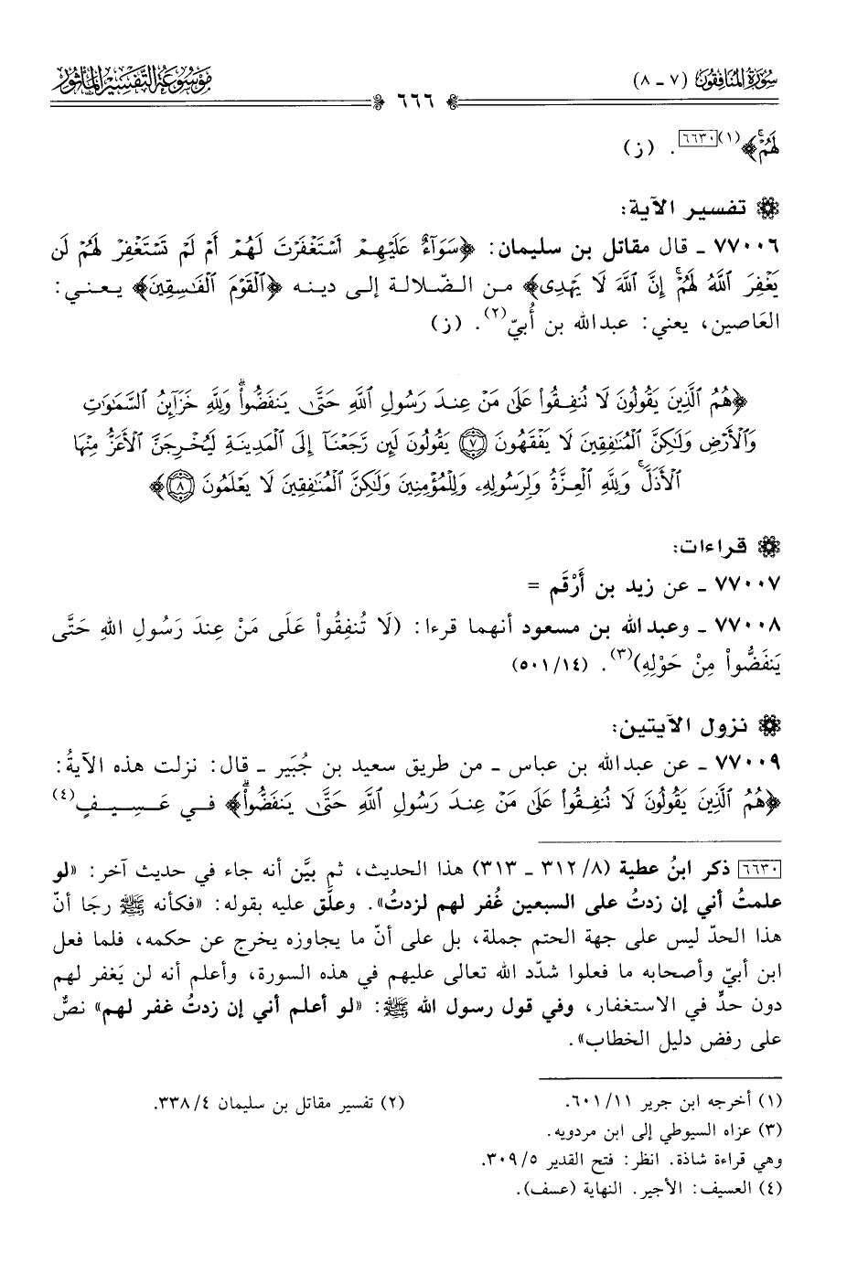 ٧٧٠٠٨ - وعبد الله بن مسعود أنهما قرءا: (لا تُنفِقُواْ عَلى مَن عِندَ رَسُولِ اللهِ حَتىَّ يَنفَضُّواْ مِن حَوْلِهِ) (¬٣). (١٤/ ٥٠١)