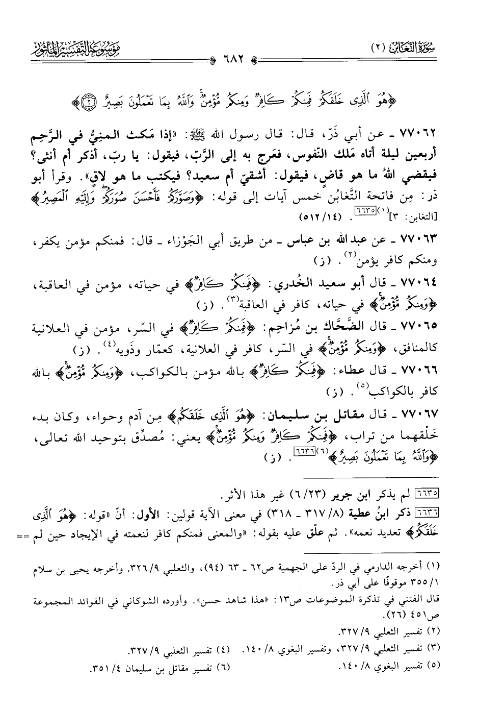 ٧٧٠٦٤ - قال أبو سعيد الخُدري: {فَمِنكُمْ كافِرٌ} في حياته، مؤمن في العاقبة، {ومِنكُمْ مُؤْمِنٌ} في حياته، كافر في العاقبة (¬٣). (ز)