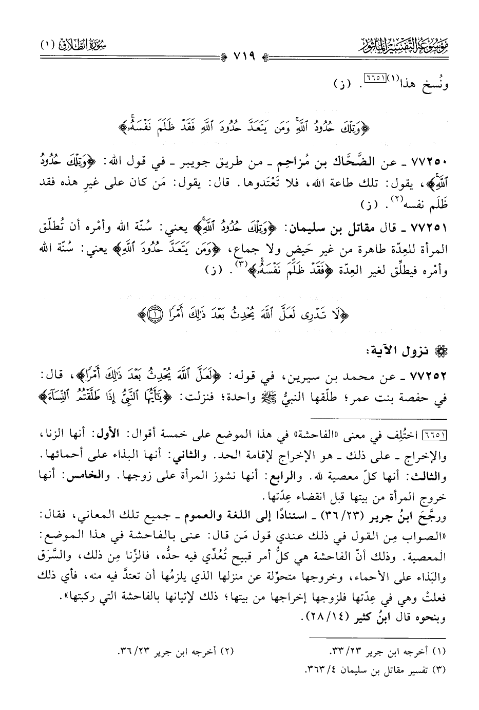 ٧٧٢٥١ - قال مقاتل بن سليمان: {وتِلْكَ حُدُودُ اللَّهِ} يعني: سُنّة الله وأمْره أن تُطلّق المرأة للعِدّة طاهرة من غير حَيضٍ ولا جماع، {ومَن يَتَعَدَّ حُدُودَ اللَّهِ} يعني: سُنّة الله وأمْره فيطلِّق لغير العِدّة {فَقَدْ ظَلَمَ نَفْسَهُ} (¬٣). (ز)