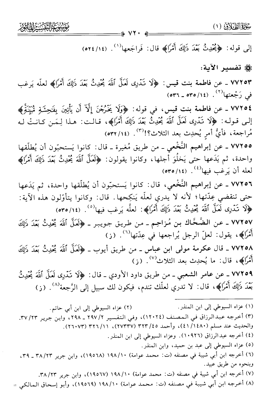 ٧٧٢٥٣ - عن فاطمة بنت قيس: {لا تَدْرِي لَعَلَّ اللَّهَ يُحْدِثُ بَعْدَ ذَلِكَ أمْرًا} لعلّه يَرغب في رَجْعتها (¬٢). (١٤/ ٥٣٥ - ٥٣٦)