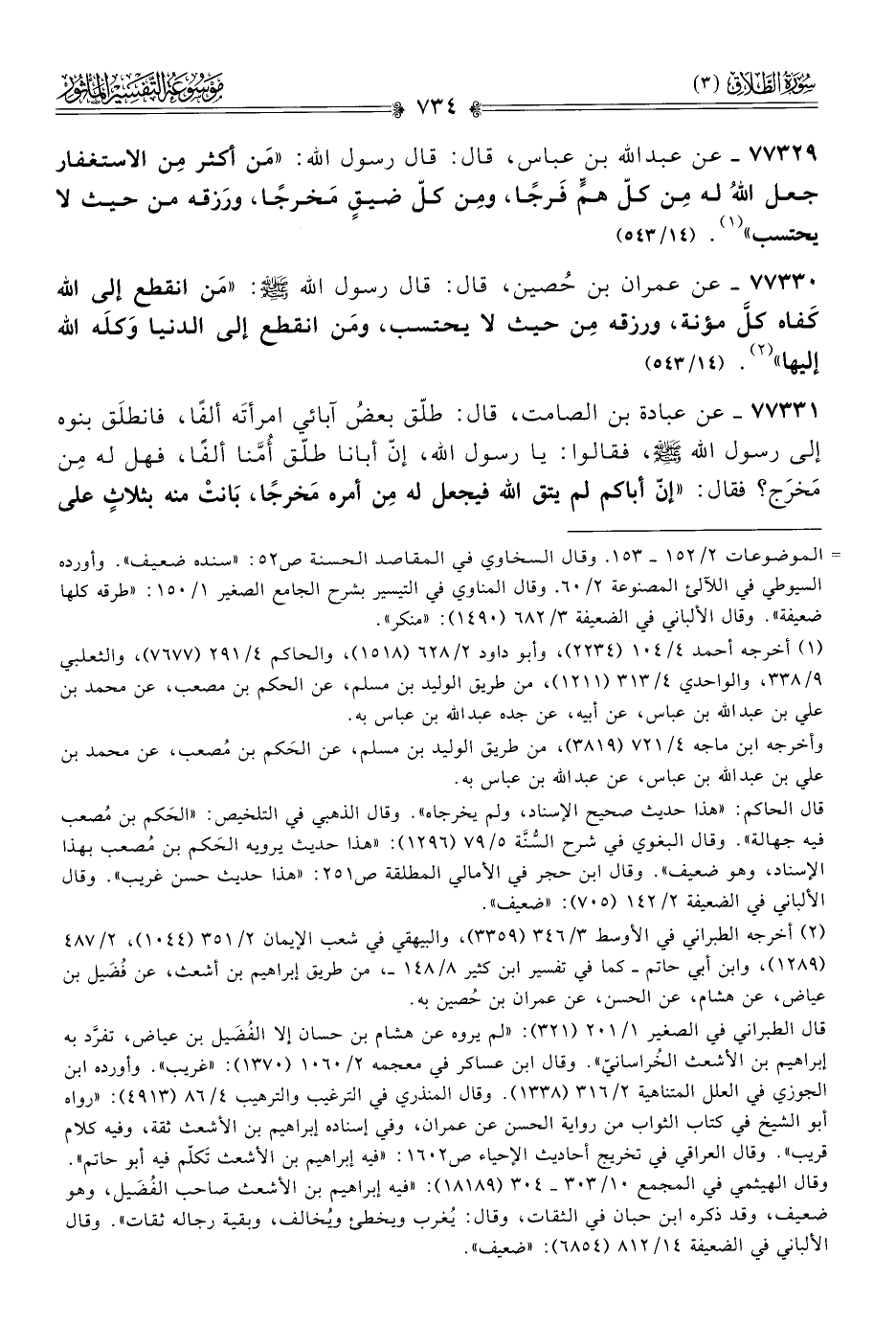 ٧٧٣٢٩ - عن عبد الله بن عباس، قال: قال رسول الله: «مَن أكثر مِن الاستغفار جعل اللهُ له مِن كلّ همٍّ فَرجًا، ومِن كلّ ضيقٍ مَخرجًا، ورَزقه من حيث لا يحتسب» (¬١). (١٤/ ٥٤٣)