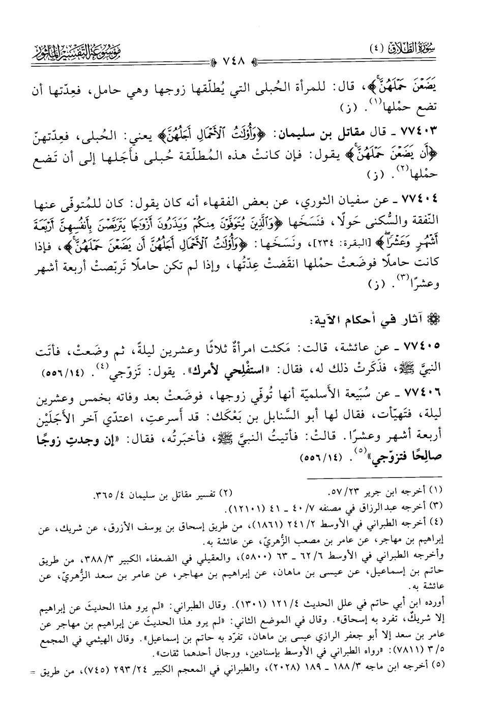 ٧٧٤٠٥ - عن عائشة، قالت: مَكثت امرأةٌ ثلاثًا وعشرين ليلةً، ثم وضَعتْ، فأتَت النبيَّ - صلى الله عليه وسلم -، فذَكَرتْ ذلك له، فقال: «استفْلِحي لأمرك». يقول: تَزوّجي (¬٤). (١٤/ ٥٥٦)