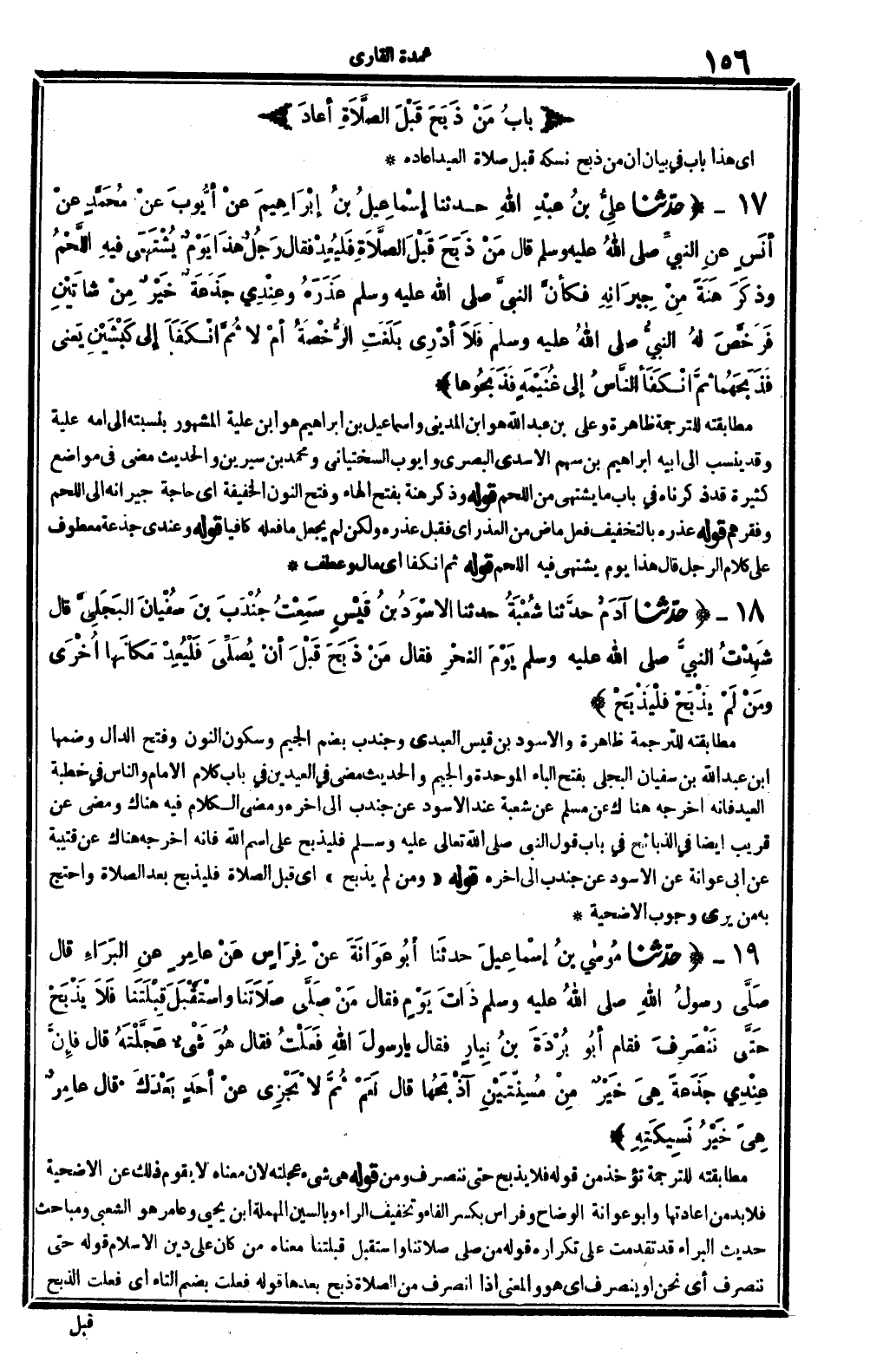 12 - (بَابُ: {مَنْ ذَبَحَ قَبْلَ الصَّلاةِ أعادَ} )