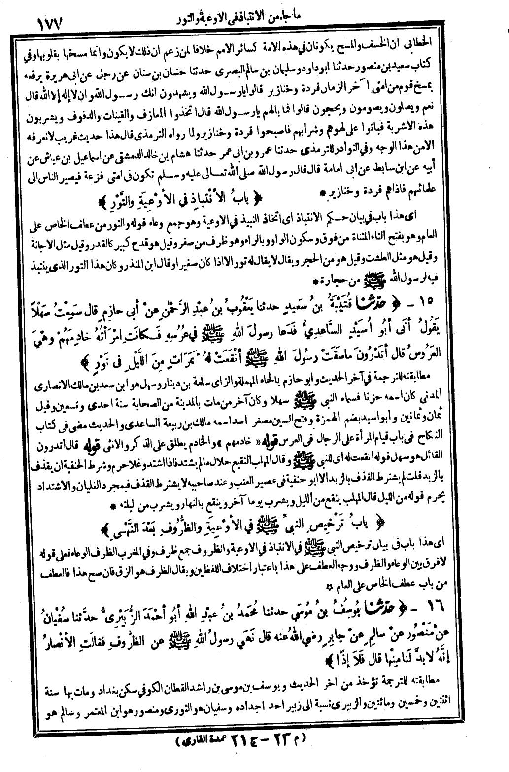 7 - (بابُ الأنْتباذِ فِي الأوْعِيَةِ والتَّوْرِ)