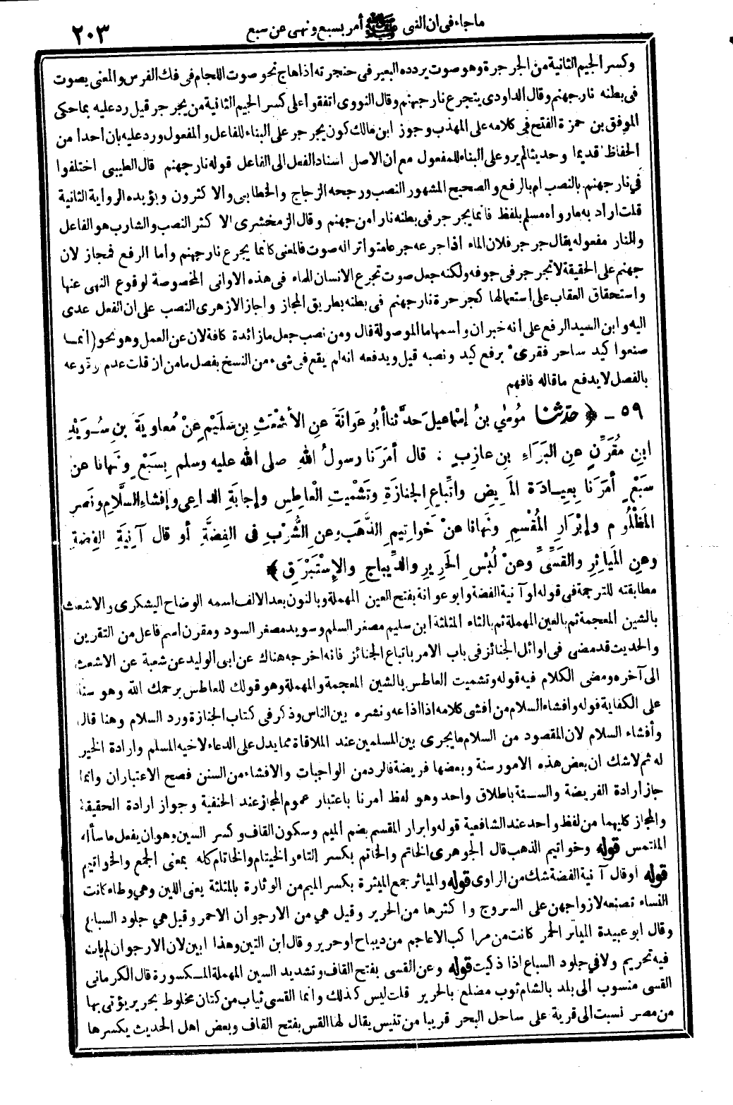 5635 - حدّثنا مُوسَى بنُ إسْماعِيلَ حدَّثنا أبُو عَوَانَةَ عنِ الأشْعَثِ بنِ سلَيْمٍ عنْ مُعاويَة بنِ سُوَيْدِ بنِ مُقَرِّنٍ عنِ البَرَاءِ بنِ عازِبٍ قَالَ: أمَرَنا رسولُ الله صلى الله عَلَيْهِ وَسلم، بِسَبْعٍ ونَهانا عنْ سَبْعٍ، أمَرَنا بِعِيادَة المَرِيضِ واتِّباعِ الجنازَةِ وتَشْميتِ الْعاطِسِ وإجابَةِ الداعِي وإفشاءِ السَّلامِ ونَصرِ المَظْلُوم وإبْرَارِ المُقْسِمِ، ونهانا عنْ خواتِيمِ الذَّهَب وعنِ الشُّرْبِ فِي الفِضَّةِ أَو قَالَ: آنِيةِ الفِضةِ وعنِ المَياثِرِ والقَسِّيِّ وعنْ لُبْسِ الحَرِيرِ والدِّيباجِ والإسْتَبْرَقِ.