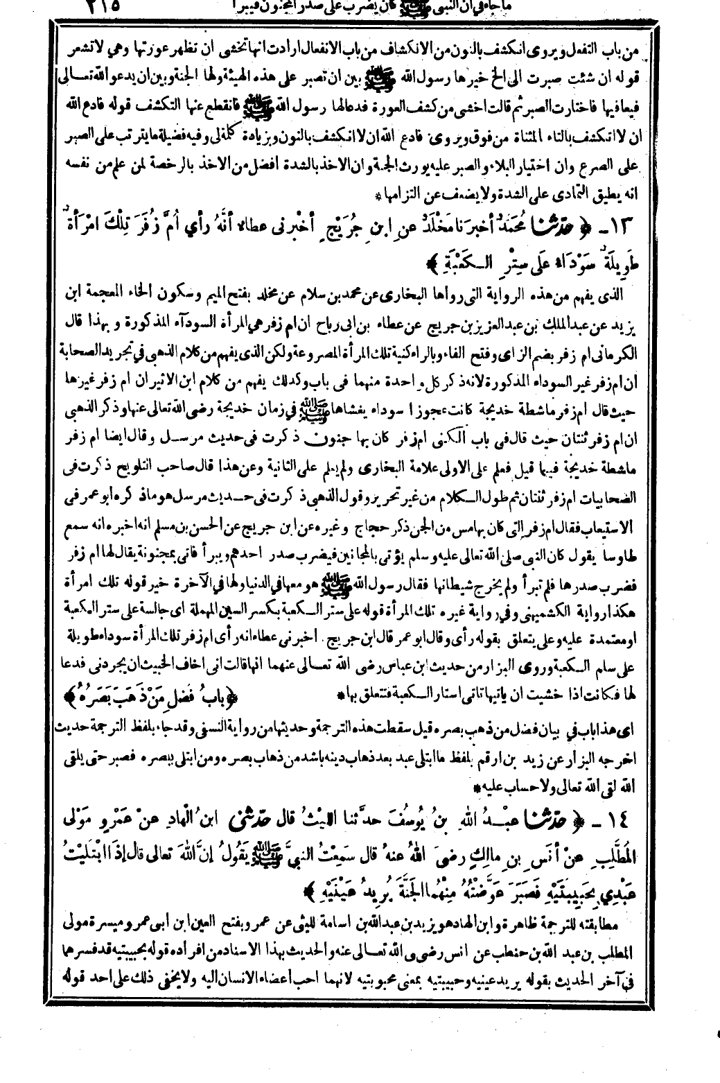 5653 - حدّثنا عبْدُ الله بنُ يُوسُفَ حدَّثنا الليْثُ قَالَ: حدّثني ابنُ الْهادِ عنْ عَمْروٍ مَوْلى المُطَّلِبِ عنْ أنَسِ بنِ مالِكٍ، رضيَ الله عنهُ، قَالَ: سَمِعْتُ النبيَّ صلى الله عَلَيْهِ وَسلم يَقُولُ إنَّ الله تَعَالَى قَالَ: إذَا ابْتَليْتُ عَبْدِي بِحَبِيبتَيْهِ فَصَبَرَ، عَوَّضْتُهُ مِنْهُما الجَنَّةَ يُرِيدُ: عَيْنَيْهِ.